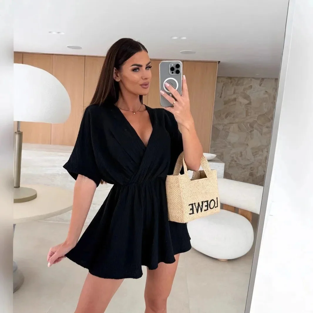 ELEGANTE KORTE JUMPSUIT MET WIJDE MOUWEN EN MODERNE LOOK
