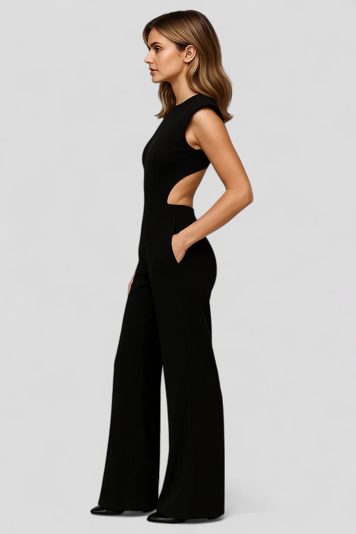 Stijlvolle mouwloze damesjumpsuit met open rug en wijde broekspijpen