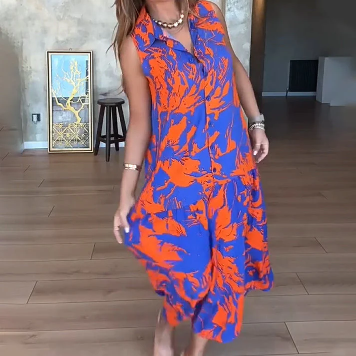 ZOMERSE MAXI JURK ZONDER MOUWEN MET KNOOPDETAIL